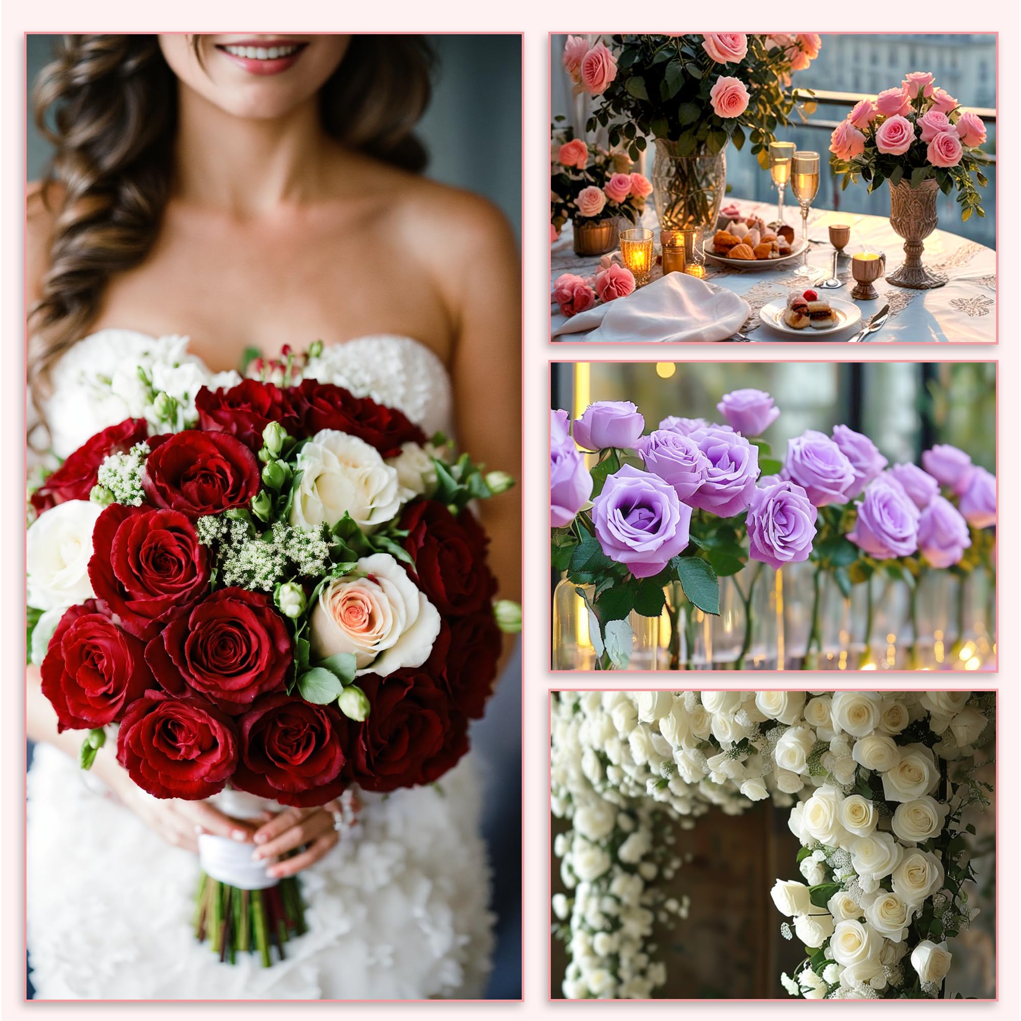 【Long-Lasting Beauty】Unlike real flowers, these fake roses do not wither or die. Plastic roses retain their beautiful look for a long time, adding ongoing charm to your space. Rose bouquet are suitable for weddings, wedding arches, flower walls, kissing balls, reception centers, office decorations, and more
